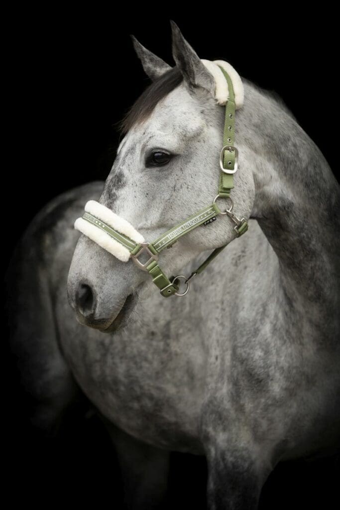 Horse Unique grimma med päls, Oliv / Creme päls